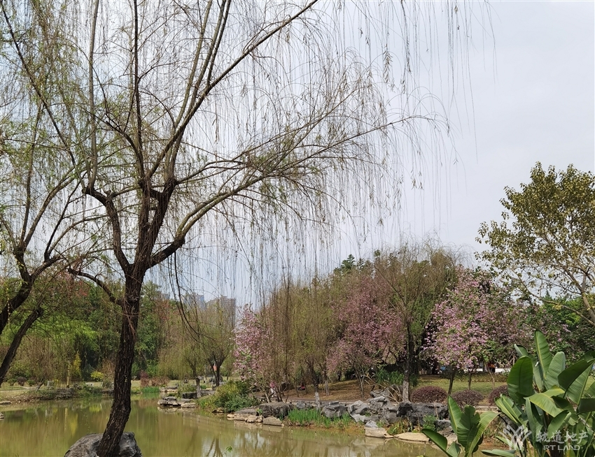 惠風(fēng)和暢,水波不興,湖光倒影里的滿園春色,更覺美不勝收。(許崢嶸 攝)