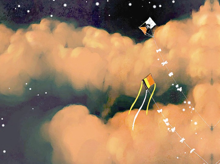 小囡囡就這么仰望著那個高掛在天上的風(fēng)箏,她也不去追,不去搶。因?yàn)榭粗L(fēng)箏還在天上,心里就還有夢。如果把它拿在手上,可能,她就再也不會做夢了。