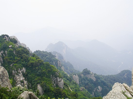 我們的行程很快,在下纜車后迅速到達南天門開始向玉皇頂進發(fā),然后終于來到了向往已久的泰山摩崖石刻處。作為泰山的標記之一,站在《紀泰山銘》的刻石下面,仰望這部唐玄宗的"封"山之作,頓時覺得自己十分渺小,泰山獨有的莊嚴神圣和巍峨磅礴撲面而來,讓我完全拜服于泰山的獨特魅力之中。隨后我們登上了泰山之巔--玉皇頂。在玉皇頂回身俯視天地,終于在課本之外親身體會感受到杜甫"會當(dāng)凌絕頂,一覽眾山小"這句千古絕唱的韻妙之處,也真切的領(lǐng)會到"登泰山而小天下"的無與倫比的雄偉霸氣所在。